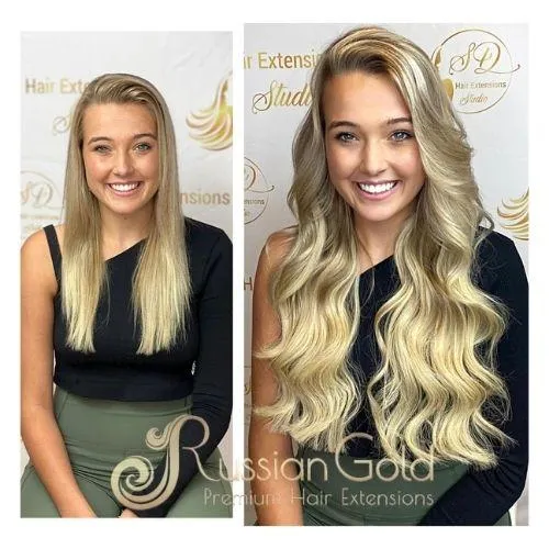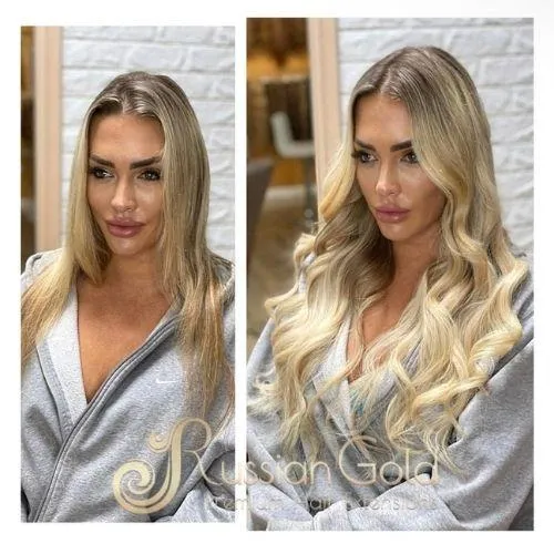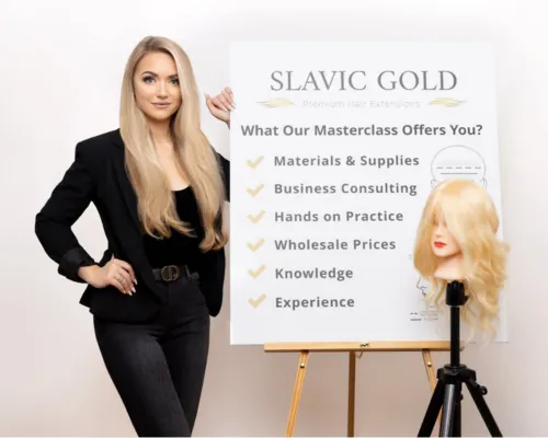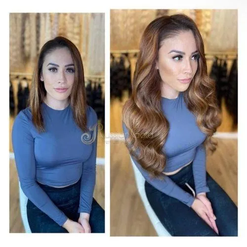 We use only premium Slavic Russian hair — the structure of this hair is naturally fine and lightweight, so it doesn’t put stress on your roots like many other brands. We work exclusively with our own brand — Slavic Gold Hair — known for its natural look and long-lasting quality. It blends beautifully with your texture and tone and is safe even after medical treatments or hair loss. We also keep a variety of hair textures in stock: straight, wavy, and curly — all ready for same-day installation or custom matching!